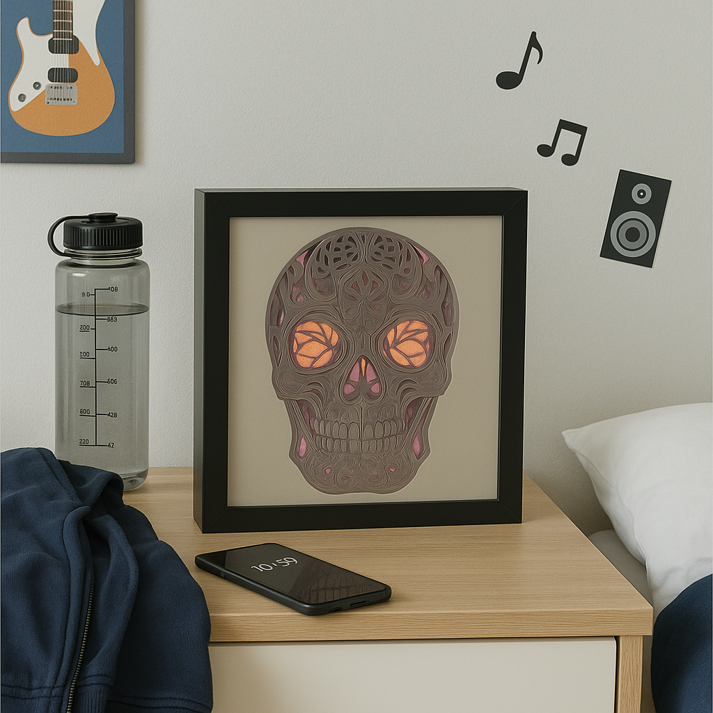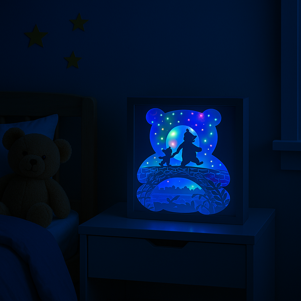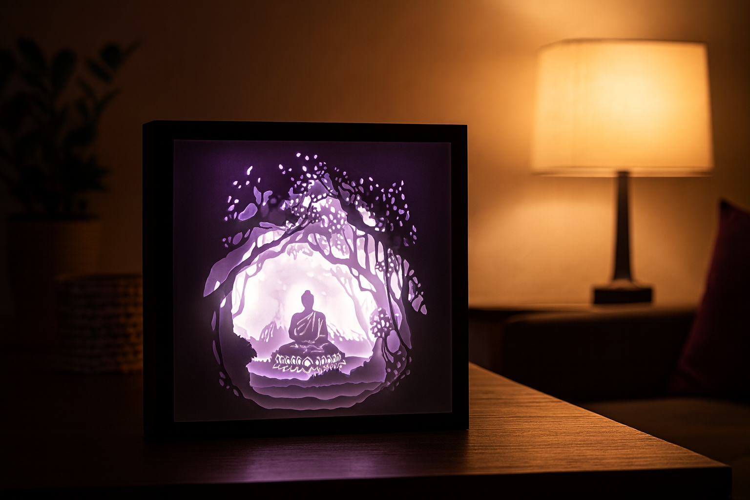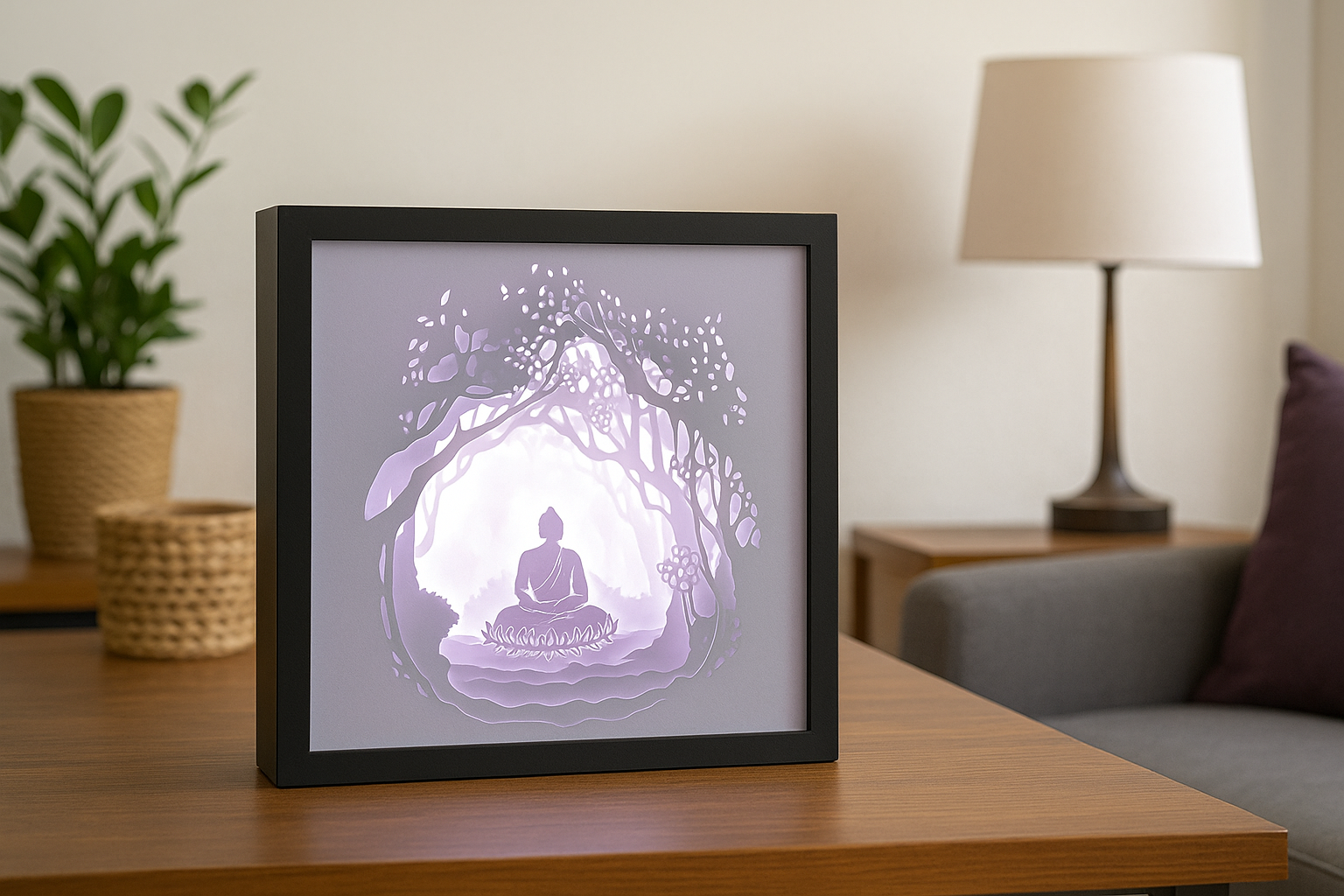 De véritables petits mondes poétiques réalisés en papier découpé et superposé, puis mis en lumière par un éclairage doux. Chaque light box raconte une histoire : une scène féerique, un décor naturel ou un motif symbolique, magnifié par la profondeur créée par les différentes couches de papier. La lumière diffuse apporte une ambiance chaleureuse, idéale en veilleuse, en décoration de salon ou en cadeau original. Personnalisables selon vos envies, ces créations transforment un simple cadre en véritable objet d’art lumineux.